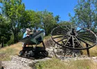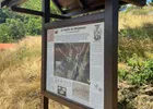 Interpretation panels tell the story of the kaolin mine, illustrated by the miner and his cart fixed to the Pujol rock.